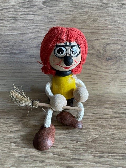 Drvena sjedeća figura koja je veseli ukras za dječje sobe, ali i ostale prostorije. U donjem dijelu tijela ima otvor za sjedenje na ljuljački. Lutka se stoga može kupiti zasebno ili s ljuljačkom