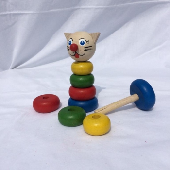 Drvena figura za slaganje i rastavljanje. Ova simpatična igračka jedna je od prvih djetetovih igrački kojom će razvijati svoju finu motoriku. Kroz igru upoznajte svoje dijete sa bojama i različitim veličinama.