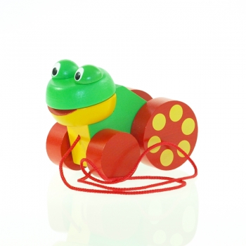 Drvena žaba šarenih boja koja se povlačenjem špagice veselo kreće, te će motivirati i vaše dijete na prve korake. Izrađena je od visokokvalitetnog drveta i obojana veselim bojama koje će zapeti za oko svakom djetetu. Drvena žaba i vaše dijete bit će najbolji prijatelji i nerazdovojan par.